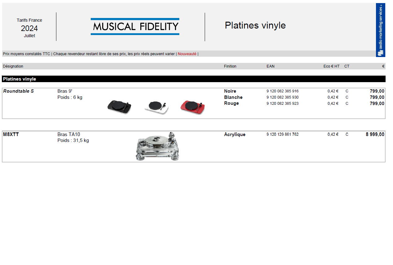 Musical Fidelity : Tarifs Gamme Platines-vinyle (Décembre 2025)