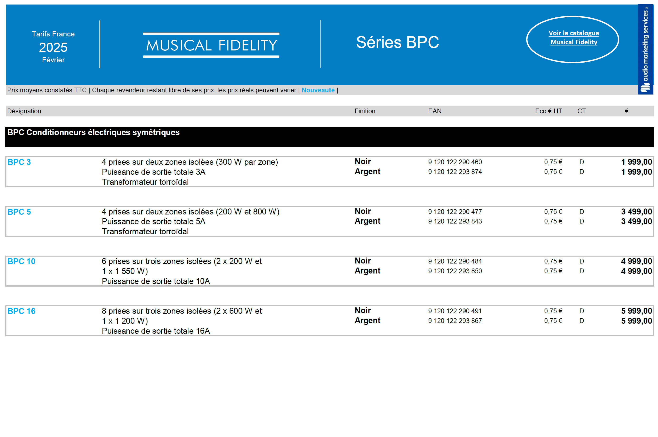 Musical Fidelity : Tarifs Gamme BPC (Décembre 2025)