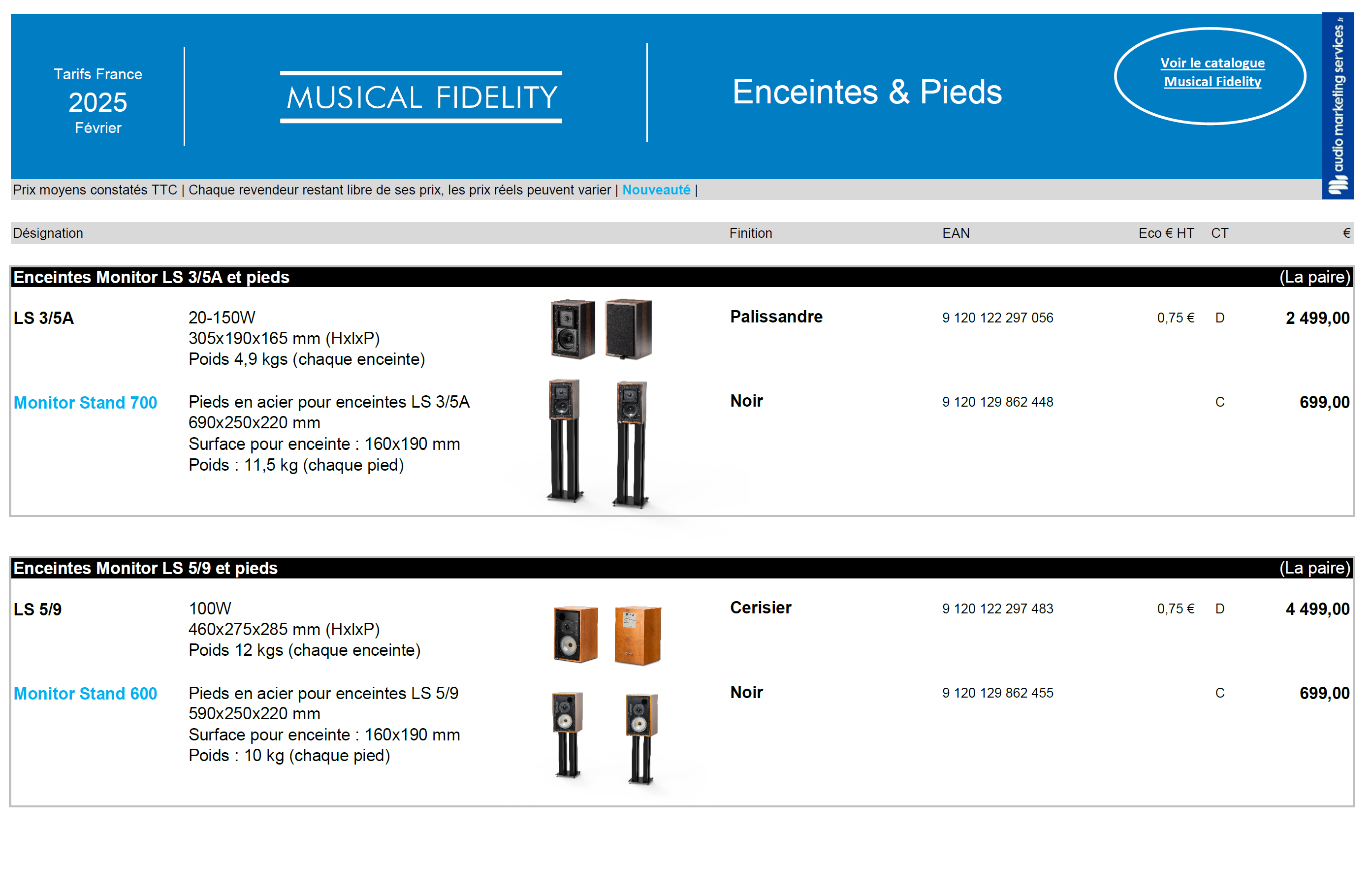 Musical Fidelity : Tarifs Gamme Enceintes (Décembre 2025)