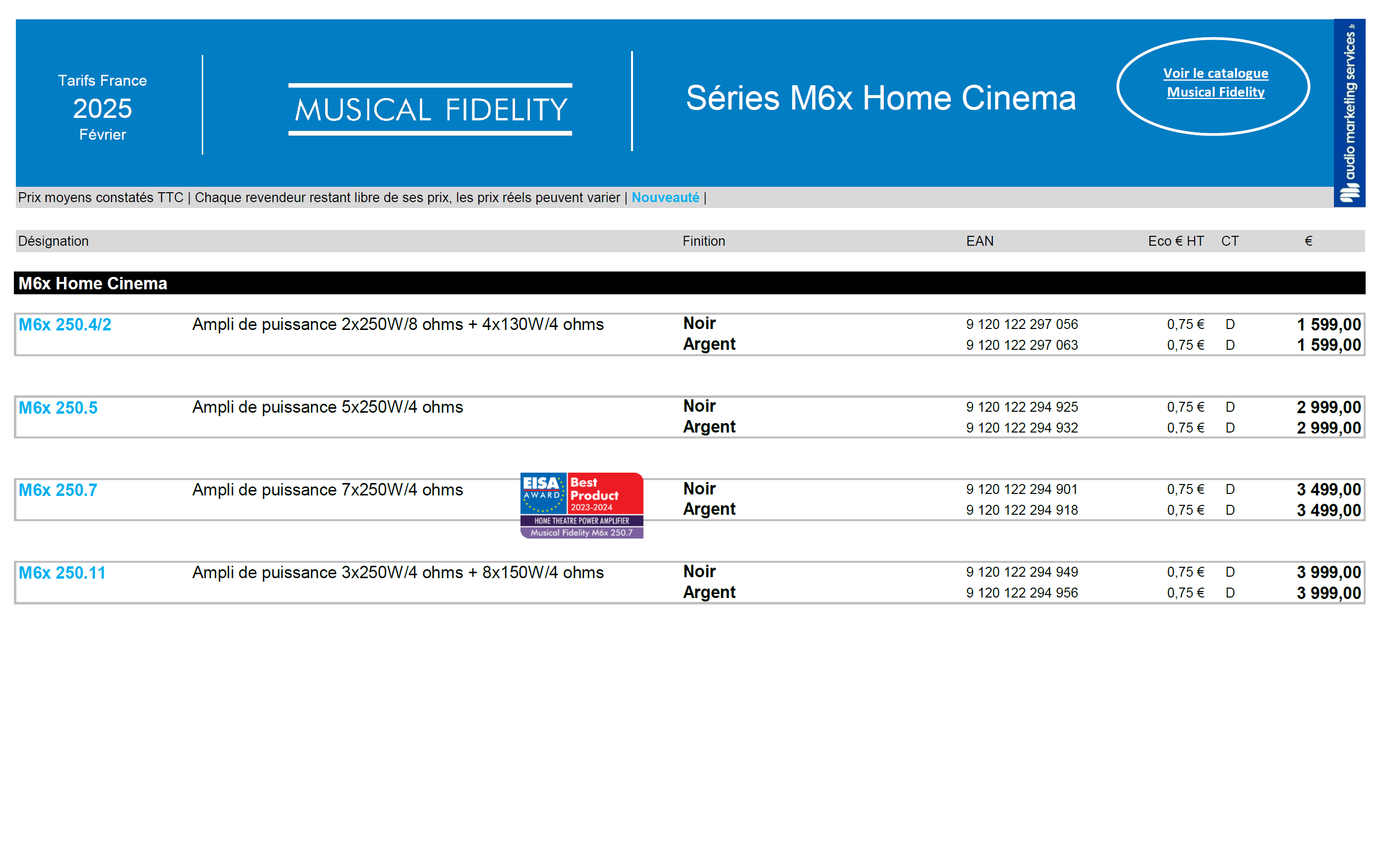 Musical Fidelity : Tarifs Gamme M6x Home Cinema (Décembre 2025)