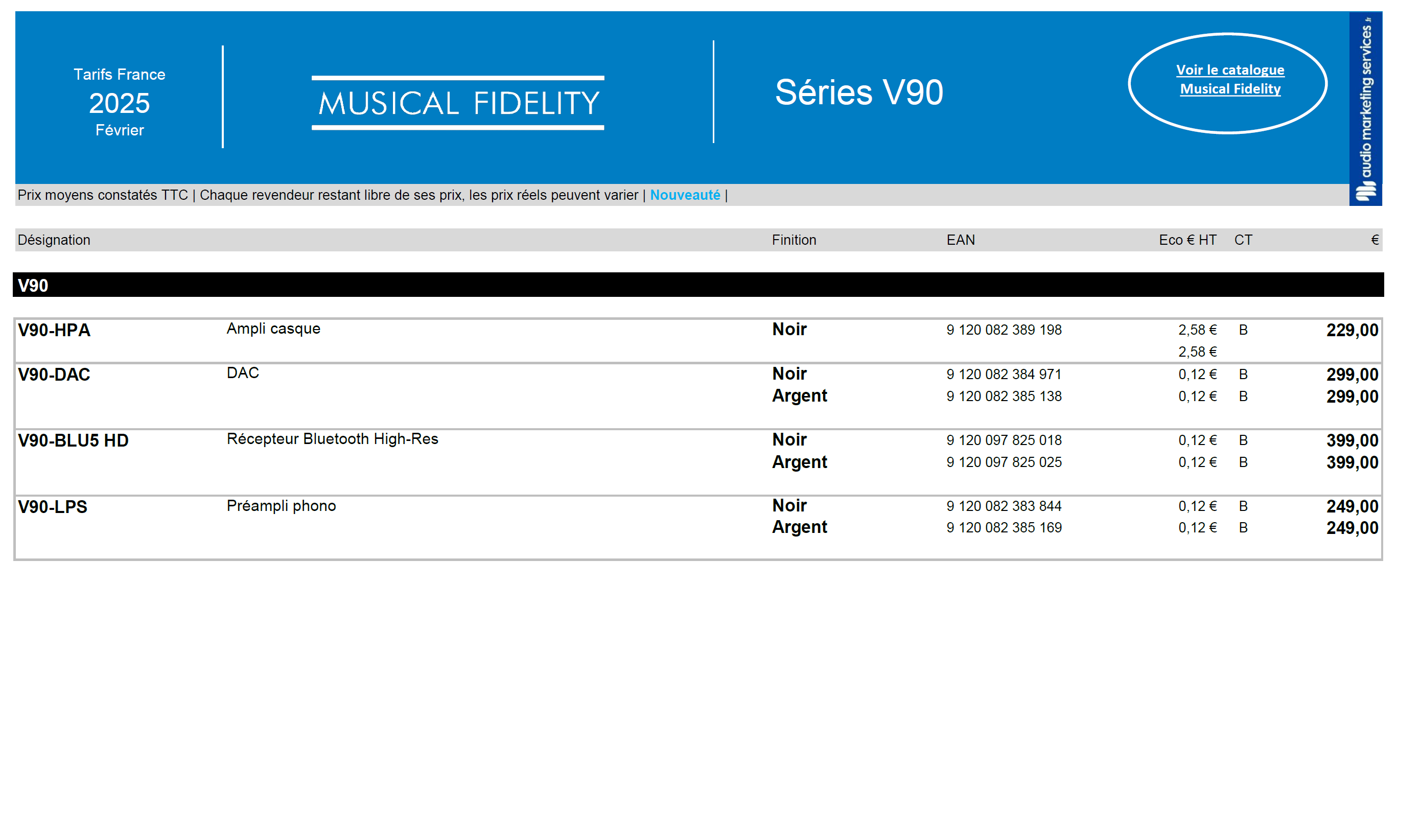 Musical Fidelity : Tarifs Gamme V90 (Décembre 2025)