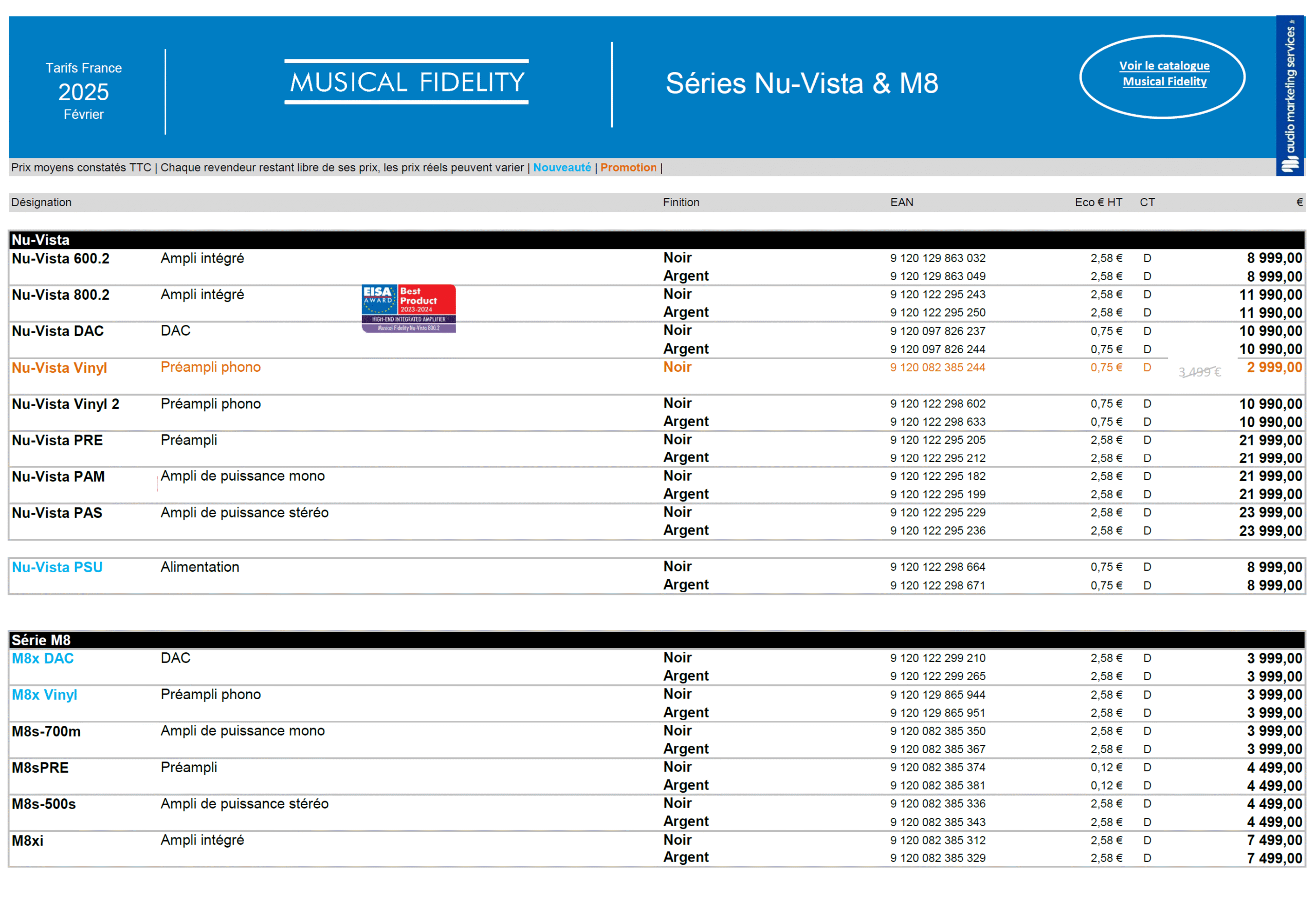 Musical Fidelity : Tarifs Gamme M8 (Décembre 2025)
